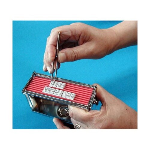 フラットスタンプ/ロールマーカーで使用する差替え式ゴム活字です。印面の裏側が凸面仕様になっていて、印字内容を自由に設定できます。 |