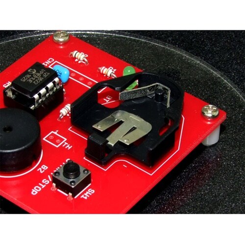 お湯を入れたカップめんのフタの上に乗せるだけで、タイマーが自動スタートするラーメンタイマーの組み立てキットです。温度センサー+マイコンによりお湯の温度を検知してタイマーを自動的に動作させる仕組みです。 |