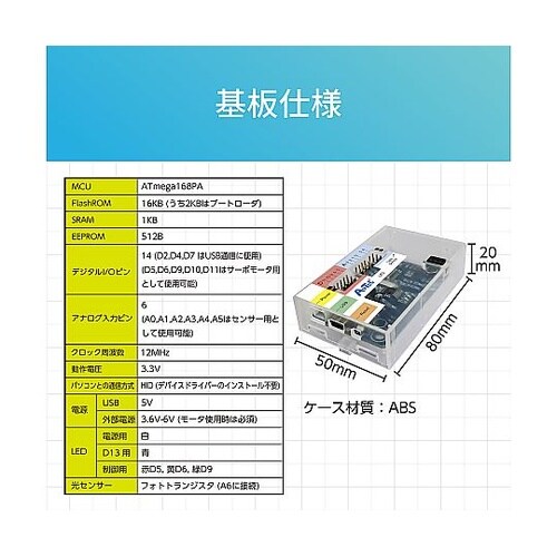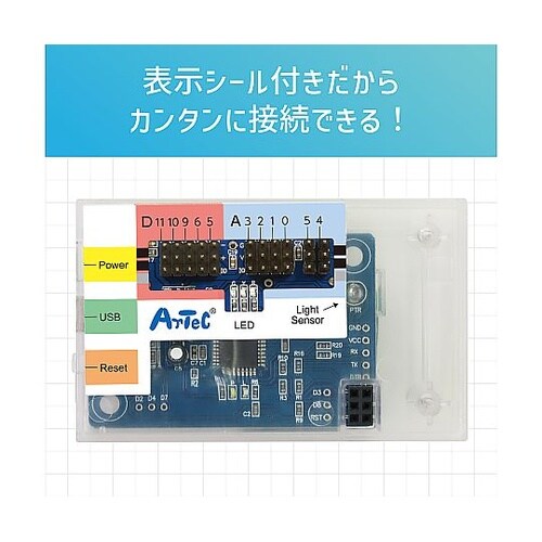 デバイスドライバーのインストール不要!本体の光センサーとLEDでプログラムを実行できる!※PC接続を行うためには、153101 USBケーブルminiBを別途用意する必要があります。 |