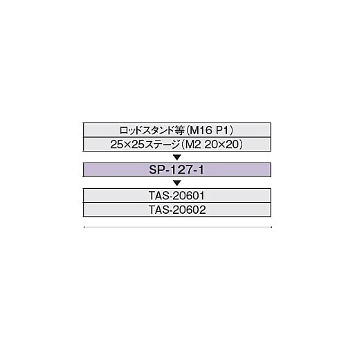 X・XY軸ネジ送りステージ(TAS−20601・20602)用の取付穴変換スペーサーです。ロッドスタンドのオフセットプレートとしても使用できます。 |