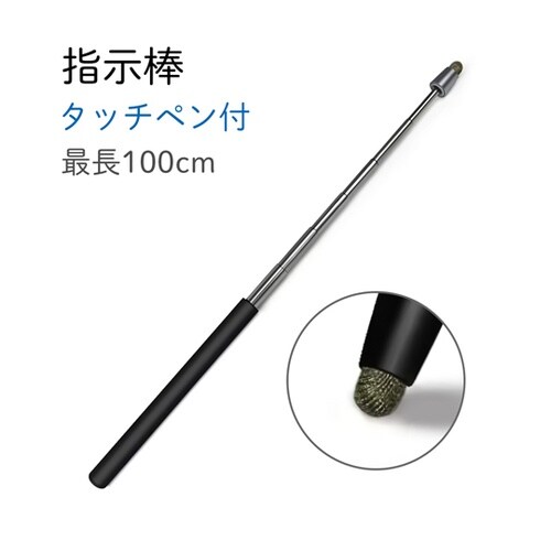タッチペン付指示棒。最長100cmまで伸長可能。会議やプレゼンの際に、役立つ便利アイテムです。 |