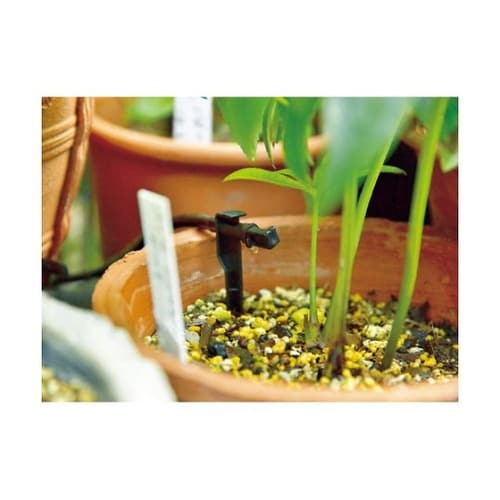 簡単水やりシステムの基本パーツです。土に差して使用する小型スプリンクラーです。鉢植え・プランターに適しています。ポタポタと点滴で水やりをします。散水用。 |