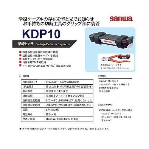 ゴムリング M×2、S×2感度調整ボリュームカバー 本体付属×1、予備×2LR44(ボタン電池)×2取扱説明書本製品または本製品を取付けた切断工具は検電器ではありません。 |