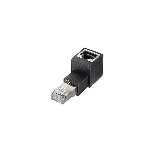 カテゴリ6A対応、RJ−45コネクタ90度角度変更アダプタ・上出し。RJ−45差し込みポートの方向を90度角度変換することができる変換アダプタです。 |