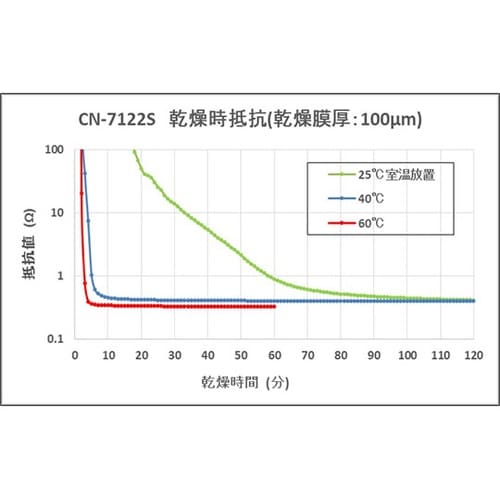 従来品【CN−7120】の遅乾タイプです。乾燥速度がゆっくりですのでペースト塗布後の位置合わせなどの作業も快適です!常温乾燥!硬化炉等の設備がなくても、常温で乾燥させるだけで導通します。 |
