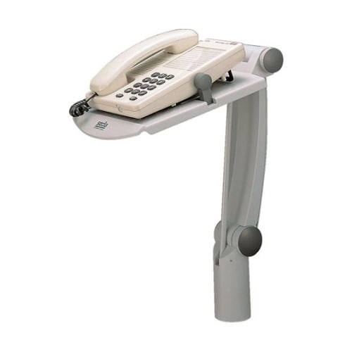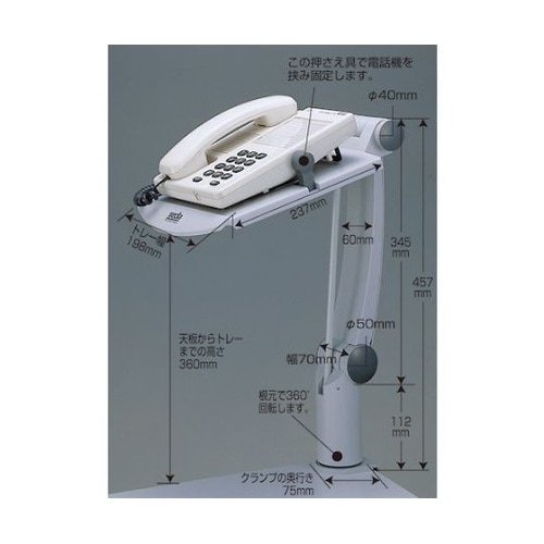 360°回転、手前に引き寄せ高さ調節も自由自在です。電話を机上より約30−40cm上に設置できるので、より広いワークスペースが得られます。 |