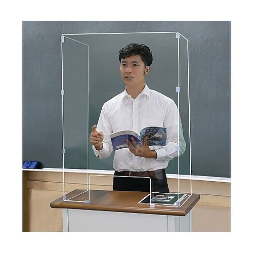 高さ90cm!窓口カウンターなど立ったまま使えるロングタイプ!店舗やオフィス・講演会や教壇での授業シーンの飛沫防止に!PET板に固定パーツを差し込むだけなのの組立簡単。 |