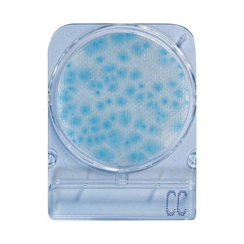 培地調製の不要な菌数測定用の培地です。接種した試料液は自然に均一に拡散します。発育した集落は着色するため菌数の計測が容易です。発育集落の釣菌が可能です。 |