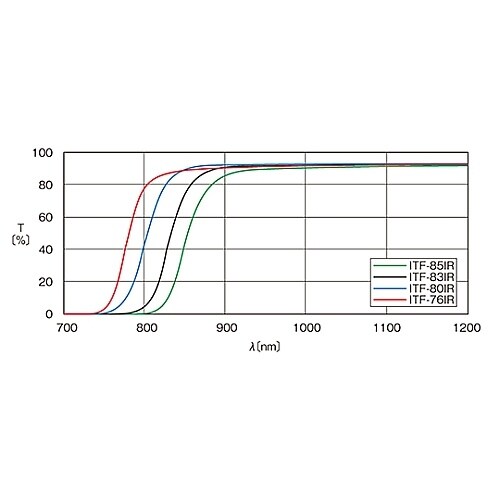 紫外・可視域の光を吸収し、赤外光を透過させるフィルターです。白色光源から赤外光を取り出す場合や、赤外線警報機や暗視カメラなどのフィルターとして使用されています。 |