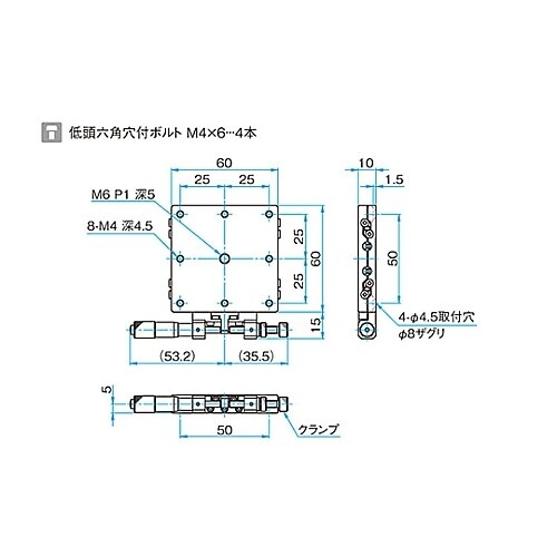 同社の手動ステージの中で最薄10mmを実現した高剛性に優れた直動ステージです。従来品(TSD)と比較し、ステージ厚さ40%・質量35%を削減しました。 |