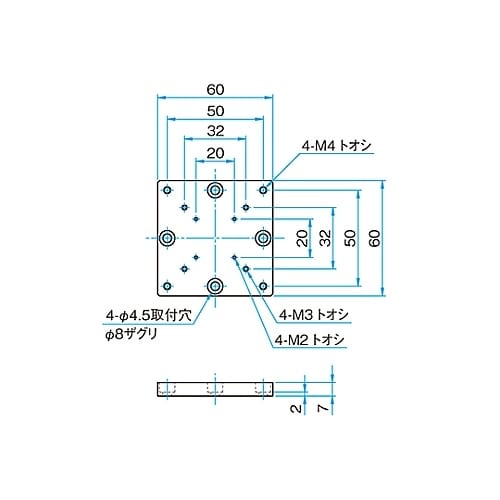 θ軸粗微動ステージ用の取付穴変換スペーサーです。 |