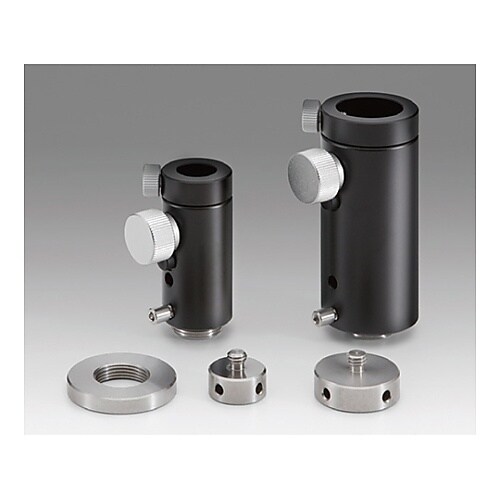ロッド付ホルダーの高さ・回転粗微動用に使用します。穴形状を1線と1点から2線と1点保持に変更したことで、従来製品に比べ安定した保持が可能となりました。 |