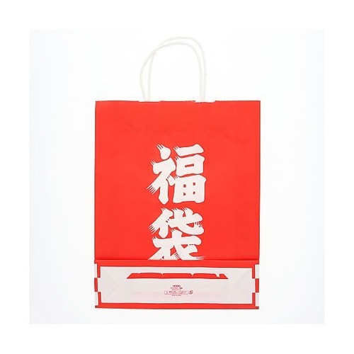 オーソドックスな福袋。大きな「福袋」の筆文字に、マチは市松の柄が入っています。 |