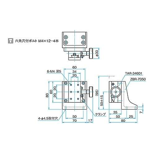 Z軸ラックピニオンステージ(垂直)−Zブラケットタイプ− サイズ34×60mm TAR−34603L 1個