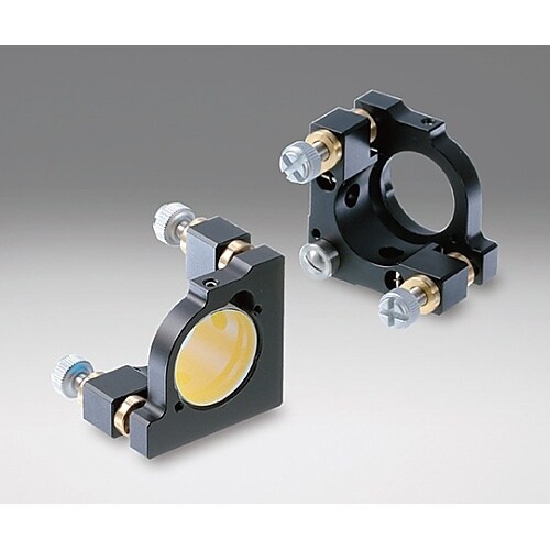 2枚の板で構成されている、たいへんシンプルな形のキネマティックミラーホルダーです。構造が簡単なので、経時変化や温度変化に優れています。レーザ共振器や干渉計のミラーホルダーとして使用できます。 |