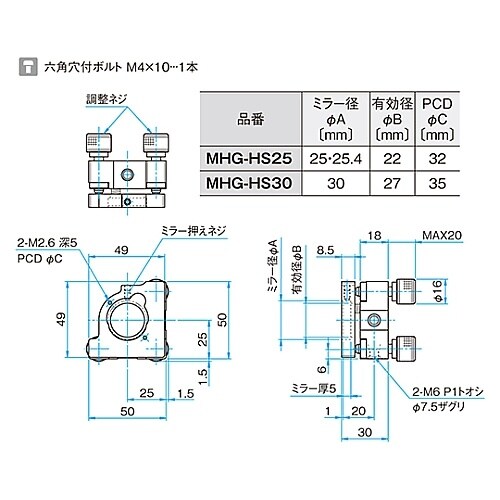 キネマティックミラーホルダー 適応素子サイズφ30mm MHG−HS30 1個