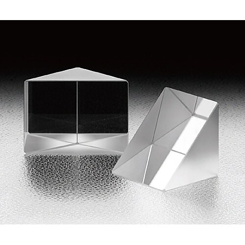 直角プリズムはミラーの代用品として使用することができます。プリズムは特殊なホルダーがなくても自立し、色々な設置方法が選べるので、装置を小型化する場合に有効です。 |