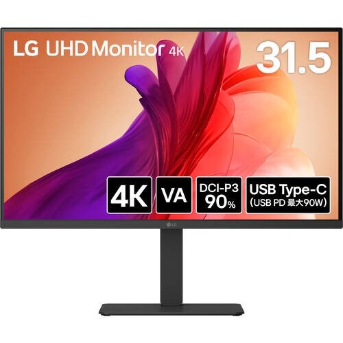 31.5インチの大画面で高精細な4K(3840x2160)に対応し、フルHDの4倍の広大な作業領域を提供します |