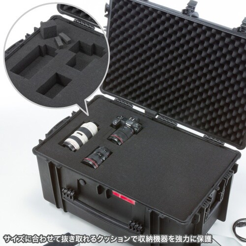 大型機器の持ち運びや保管に便利なキャリータイプのハードケース。 |