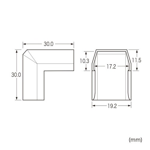 ケーブルカバー(角型)の接続部品。幅17mm、出角(デズミ)タイプ、ブラック。 |