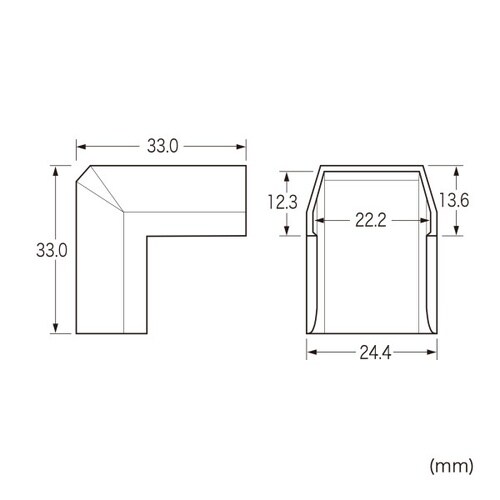 ケーブルカバー(角型)の接続部品。出角(デズミ)タイプ、幅22mm、ミルキーホワイト。 |