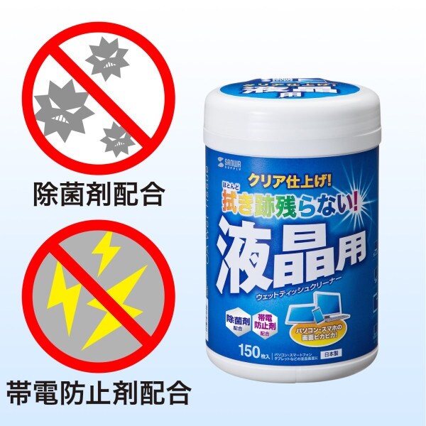 汚れを落として、拭き跡が残りにくいウェットティッシュクリーナー。150枚。 |