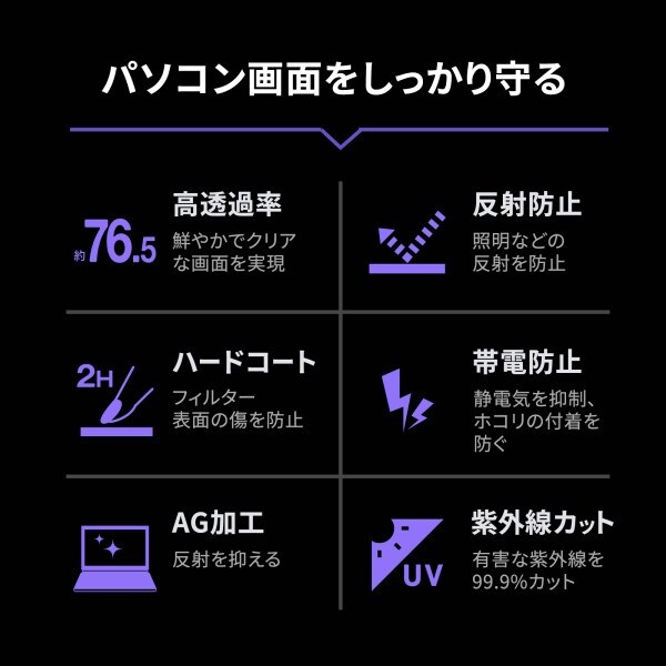 左右からの、のぞき見を防止できるプライバシーフィルター。16.0インチワイド対応。 |