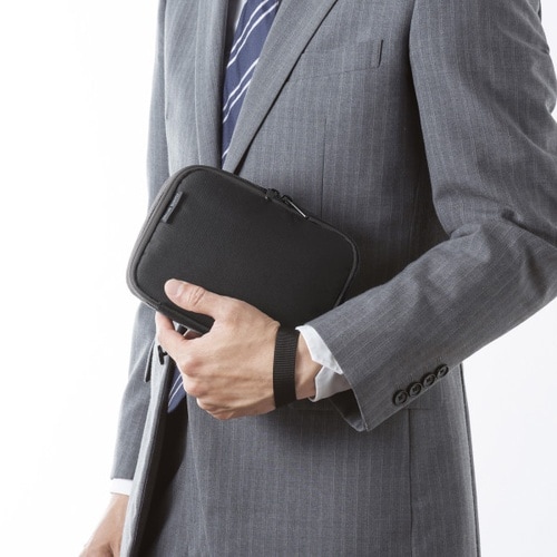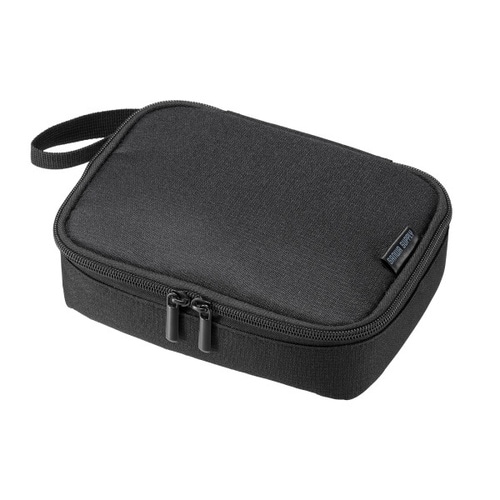 モバイルバッテリーやアダプタなどの小物をまとめてすっきり整理収納できるコンパクトポーチ。幅195×奥行135×高さ55mm。ブラック。 |