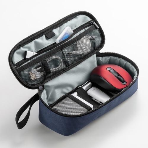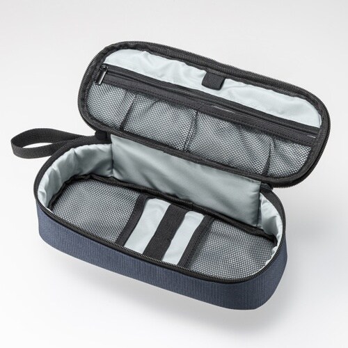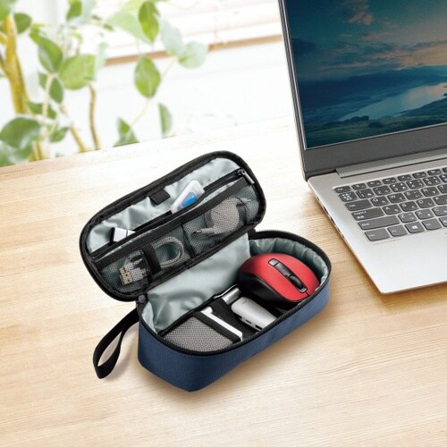 モバイルバッテリーやアダプタなどの小物をまとめてすっきり整理収納できるコンパクトポーチ。幅245×奥行100×高さ65mm。ネイビー。 |
