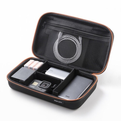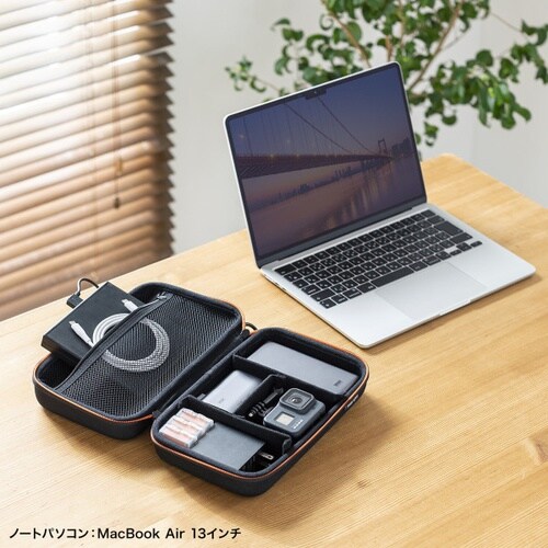 モバイルバッテリーやアダプタなどの小物をまとめてすっきり整理収納できるセミハードケース。幅260×奥行き150×高さ80mm |