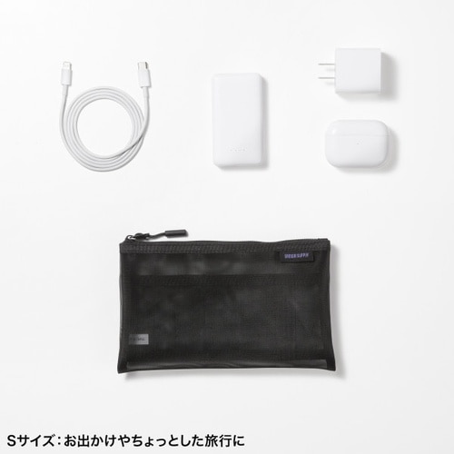 中身が見えるメッシュ素材のアクセサリーケース。W200×D10×H120mm。ブラック。 |