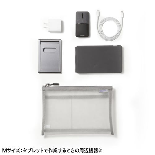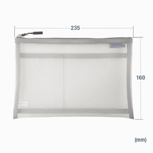 中身が見えるメッシュ素材のアクセサリーケース。W235×D10×H160mm。グレー。 |