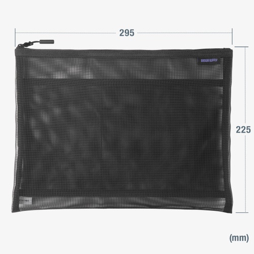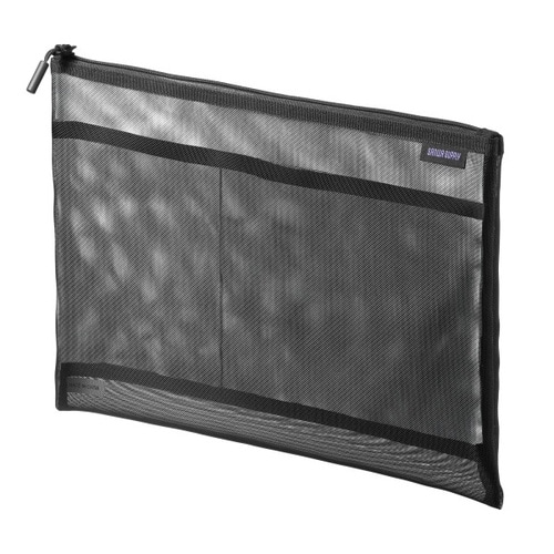 中身が見えるメッシュ素材のアクセサリーケース。W295×D10×H225mm。ブラック。 |