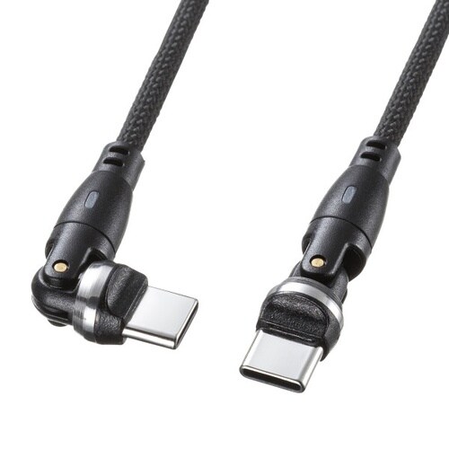 両端のコネクタが540度(左右180度+水平360度)自由自在に回転。操作性と耐久性を大幅に向上させたUSBType−Cケーブル。PD100W対応。ブラック・1m。 |