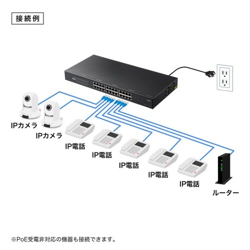 レイヤー2ギガビット対応PoEスイッチングハブ。24ポート。 |