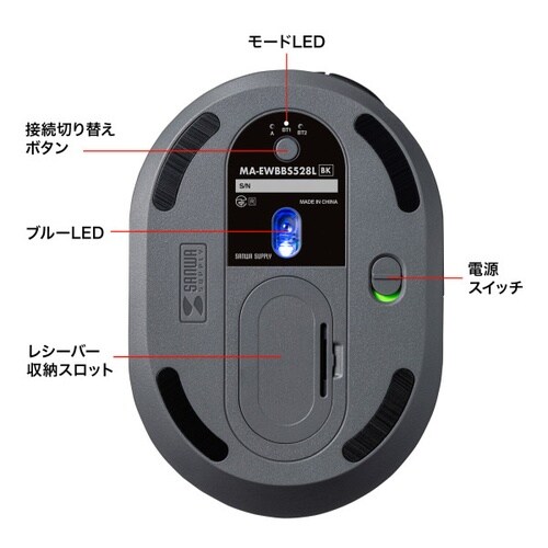 指や手のひらにそったカーブのエルゴノミクスデザインワイヤレスコンボマウス。2.4GHzワイヤレス+Bluetooth。高さ58mm。 |
