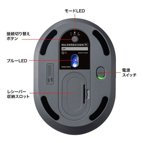 指や手のひらにそったカーブのエルゴノミクスデザインワイヤレスコンボマウス。2.4GHzワイヤレス+Bluetooth。高さ45mm。 |