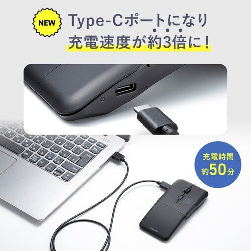 かばんにすっぽり入る、超薄型の充電式ワイヤレスマウス。5ボタン。薄型。 |