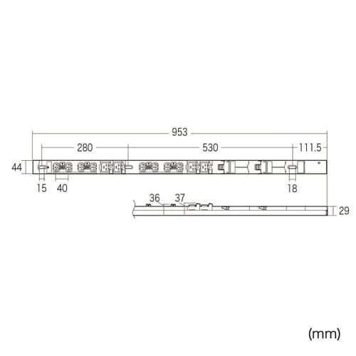 19インチサーバーラック用スリム型コンセント。サーキットプロテクタ付き。200V・30A・IECC19×4個口+IECC13×8個口・3m。 |