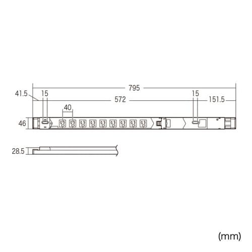 19インチサーバーラック用スリム型コンセント。サーキットプロテクタ付き。15A・3P・9個口・3m。 |