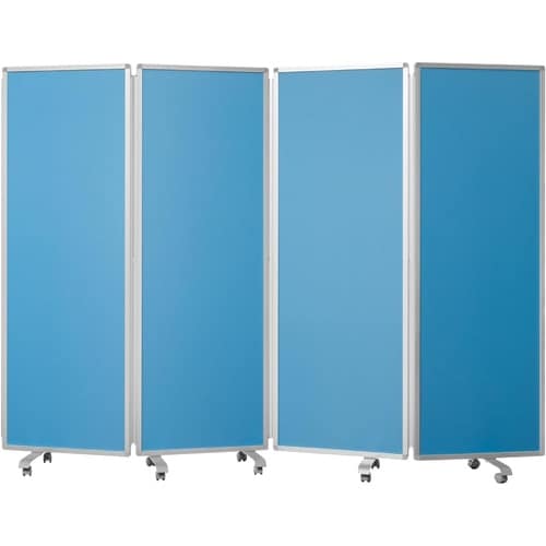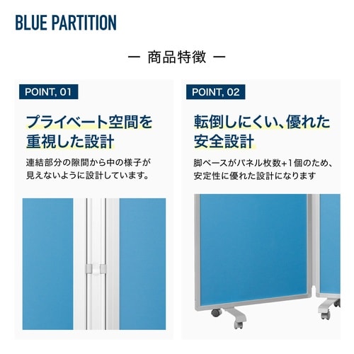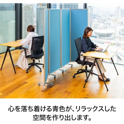 ピン差しが可能です。240CM幅を仕切れます。パネルの間に隙間が無く、連結された状態でお届けいたします。L型・コの字型も可能です。ライトブルーでオフィスを爽やかな空間に彩ります。 |