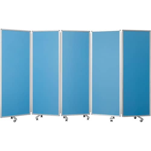 ピン差しが可能です。300CM幅を仕切れます。パネルの間に隙間が無く、連結された状態でお届けいたします。L型・コの字型も可能です。ライトブルーでオフィスを爽やかな空間に彩ります。 |