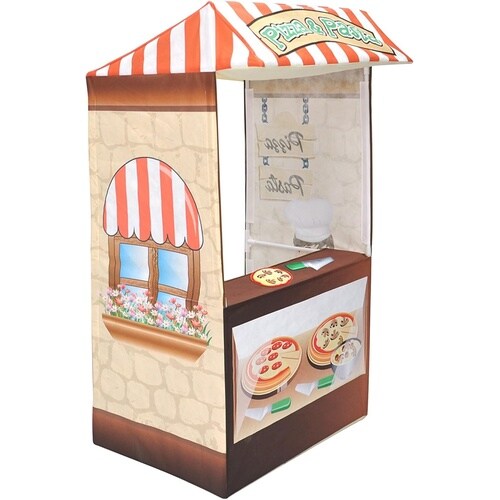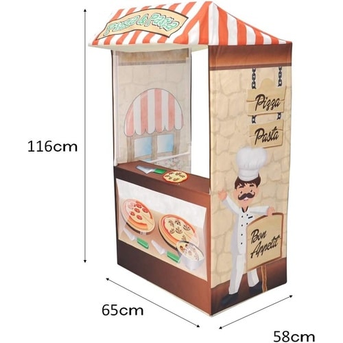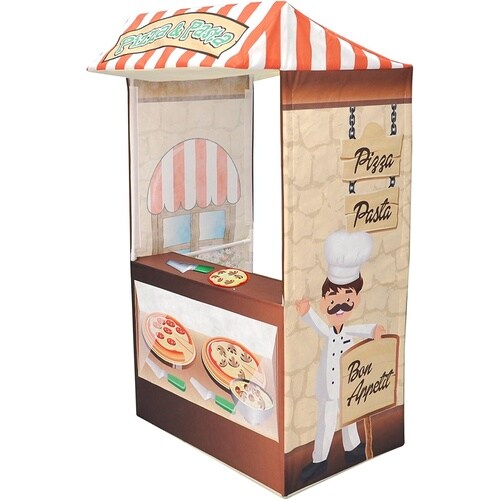 ピザ屋さんになりきれるピザショップテント。付属でピザとピザカッターのおもちゃがついています。折り畳むことができるので収納にも困りません。テントの中では最大2人で遊ぶことができます。 |