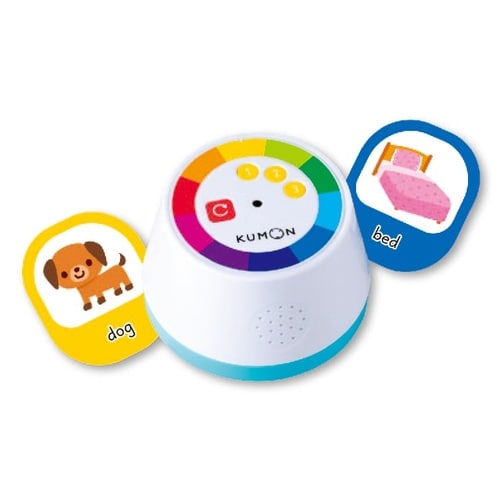 音声ユニットにカードをタッチして英語のうたや単語の音声を聞くことができるおもちゃです。単語の意味・スペル・発音を結びつけて覚えることができ、かるたモード・クイズモードで知識の定着を促すことができます。 |