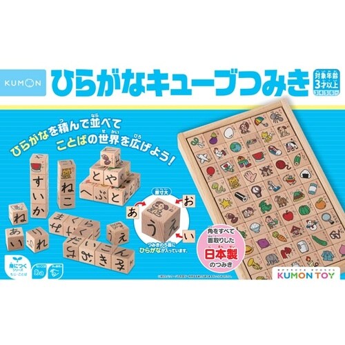 立方体のつみきの5面にひらがなが、残りの1面にイラストとことばが印刷されています。お子さまのことばの世界を大きく広げます。 |