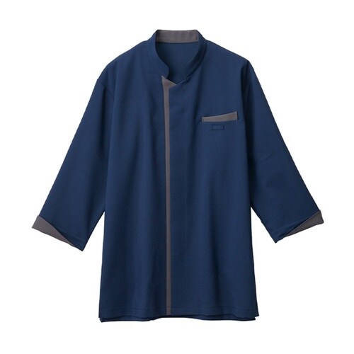 通気性に特化した新しい素材。スポーツ・アウトドアウェアにも用いられてます。水仕事など、腕まくりの手間なく作業ができる七分袖。