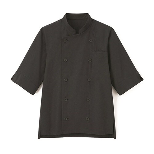 落ち着きのあるカラー展開で、素材耐久性もあるショップコートです。水仕事など、腕まくりの手間なく作業ができる七分袖。