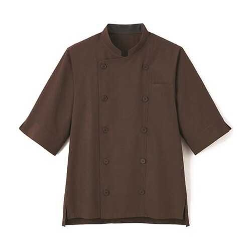 落ち着きのあるカラー展開で、素材耐久性もあるショップコートです。水仕事など、腕まくりの手間なく作業ができる七分袖。