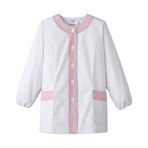 襟なし/長袖 女性用調理衣 ホワイト×ピンク 4L FA723 FA723 1枚