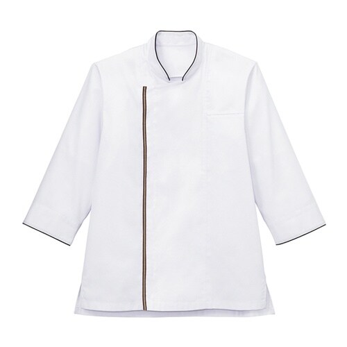 サーウ゛ォ 七分袖 ショップコート ホワイト×ブラウン LL SJAU−2009−C3 SJAU−2009−C3 1枚 A058-1325